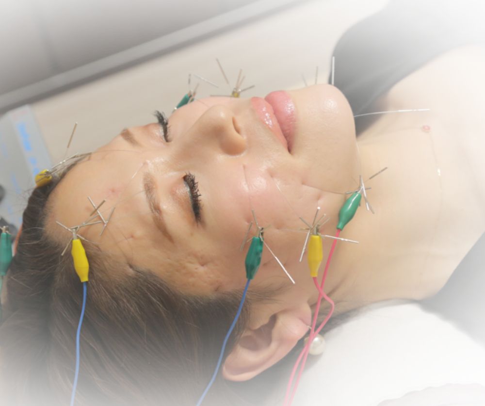 こちらは当院の1番おすすめの刺入した鍼のほとんどに電気を流す美容鍼です。悩まれている方が多いお肌のトラブル(しわ、たるみ、くすみ、ニキビなど)全てにアプローチすることができます。 |